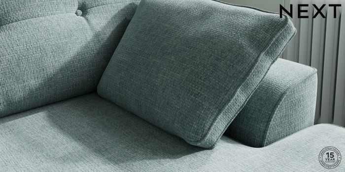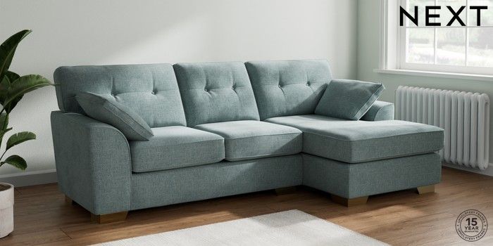 7.2.10 Stamford Buttoned Back Medium Sofa Chaise - Right Hand Chunky Chenille Light Teal Green Large Square Angle - Brushed Brass | Made Click here to use our website with more accessibility support, for example screen readers
