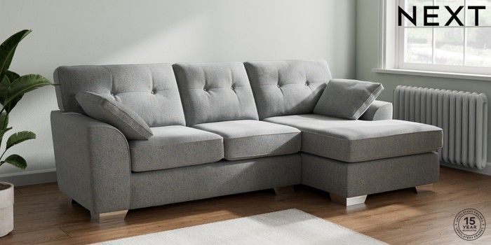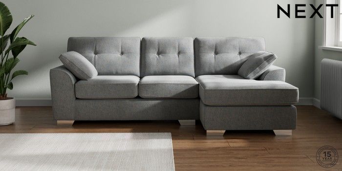7.2.10 Stamford Buttoned Back Medium Sofa Chaise - Right Hand Chunky Marl Mid Grey Large Square Angle - Chrome Metal | Made Click here to use our website with more accessibility support, for example screen readers