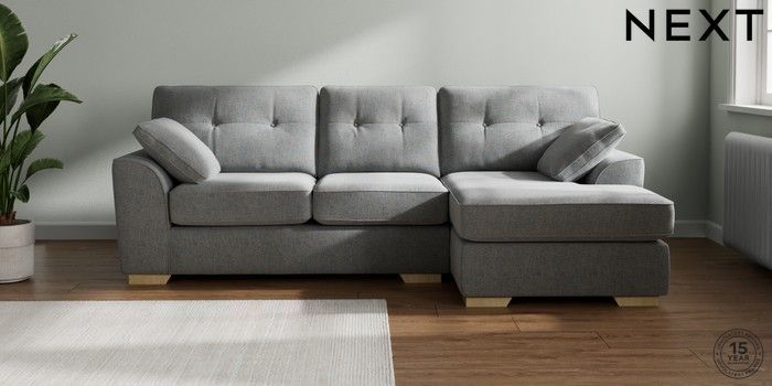 7.2.10 Stamford Buttoned Back Medium Sofa Chaise - Right Hand Chunky Marl Mid Grey Large Square Angle - Light | Made Click here to use our website with more accessibility support, for example screen readers