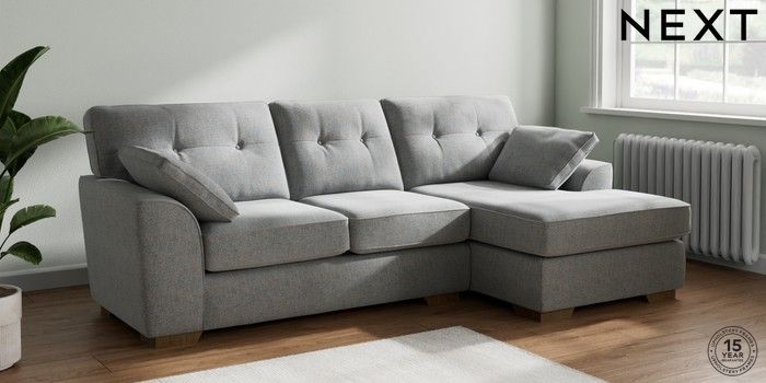 7.2.10 Stamford Buttoned Back Medium Sofa Chaise - Right Hand Chunky Marl Mid Grey Large Square Angle - Mid | Made Click here to use our website with more accessibility support, for example screen readers
