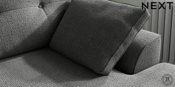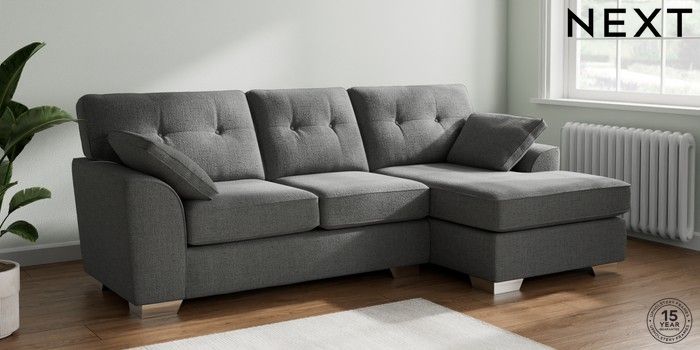 7.2.10 Stamford Buttoned Back Medium Sofa Chaise - Right Hand Chunky Texture Dark Grey Large Square Angle - Chrome Metal | Made Click here to use our website with more accessibility support, for example screen readers