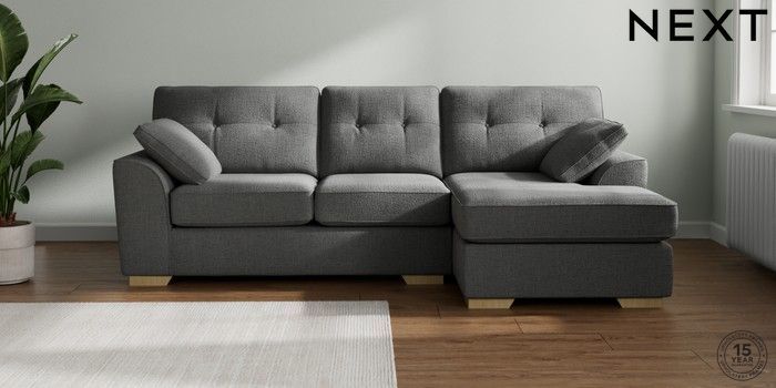 7.2.10 Stamford Buttoned Back Medium Sofa Chaise - Right Hand Chunky Texture Dark Grey Large Square Angle - Light | Made Click here to use our website with more accessibility support, for example screen readers