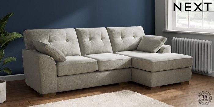 7.2.10 Stamford Buttoned Back Medium Sofa Chaise - Right Hand Chunky Texture Dove Large Square Angle - Mid | Made Click here to use our website with more accessibility support, for example screen readers