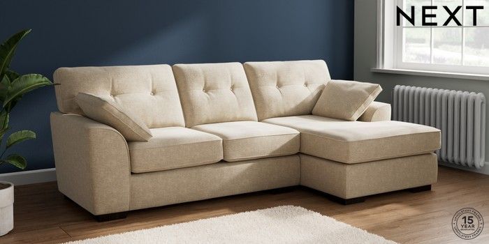 7.2.10 Stamford Buttoned Back Medium Sofa Chaise - Right Hand Chunky Weave Cream Large Square Angle - Dark | Made Click here to use our website with more accessibility support, for example screen readers