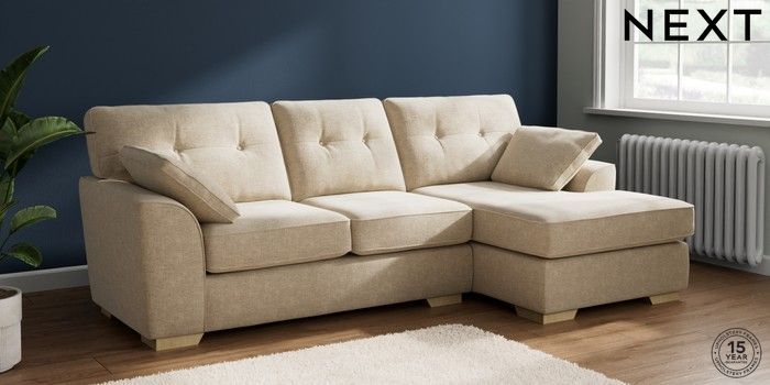 7.2.10 Stamford Buttoned Back Medium Sofa Chaise - Right Hand Chunky Weave Cream Large Square Angle - Light | Made Click here to use our website with more accessibility support, for example screen readers