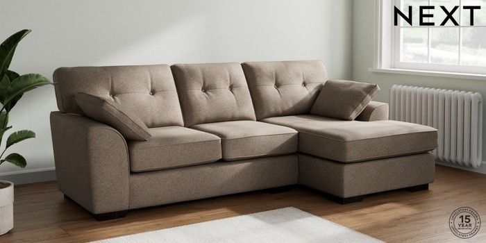 7.2.10 Stamford Buttoned Back Medium Sofa Chaise - Right Hand Chunky Weave Dark Natural Large Square Angle - Dark | Made Click here to use our website with more accessibility support, for example screen readers