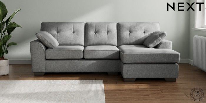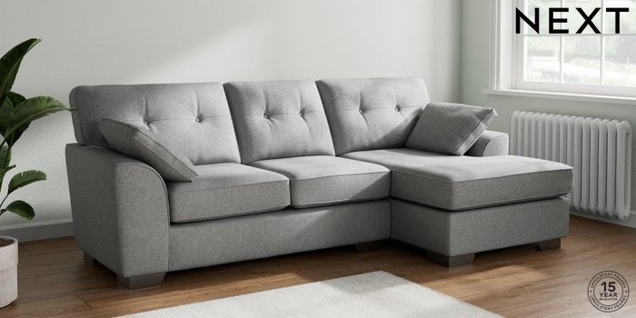 7.2.10 Stamford Buttoned Back Medium Sofa Chaise - Right Hand Chunky Weave Mid Grey Large Square Angle - Gunmetal | Made Click here to use our website with more accessibility support, for example screen readers