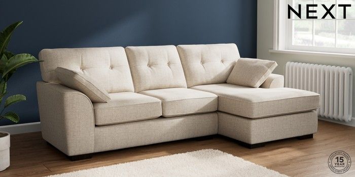 7.2.10 Stamford Buttoned Back Medium Sofa Chaise - Right Hand Chunky Weave Mid Natural Large Square Angle - Dark | Made Click here to use our website with more accessibility support, for example screen readers