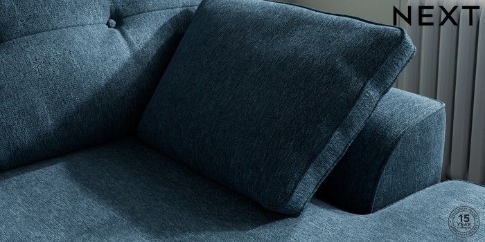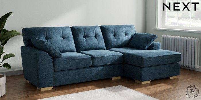 7.2.10 Stamford Buttoned Back Medium Sofa Chaise - Right Hand Cotswold Chenille Dark Blue Large Square Angle - Light | Made Click here to use our website with more accessibility support, for example screen readers