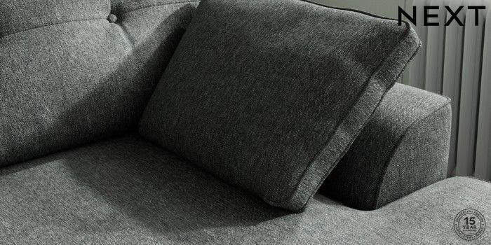 7.2.10 Stamford Buttoned Back Medium Sofa Chaise - Right Hand Cotswold Chenille Dark Grey Large Square Angle - Brushed Brass | Made Click here to use our website with more accessibility support, for example screen readers