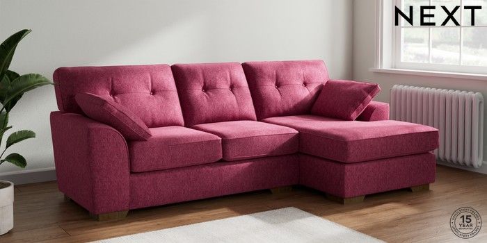 7.2.10 Stamford Buttoned Back Medium Sofa Chaise - Right Hand Cotswold Chenille Dark Raspberry Pink Large Square Angle - Mid | Made Click here to use our website with more accessibility support, for example screen readers