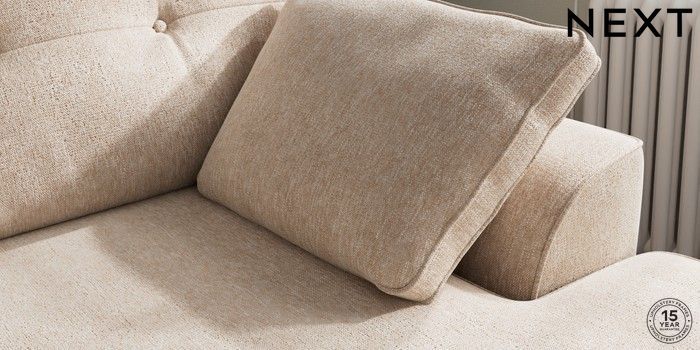 7.2.10 Stamford Buttoned Back Medium Sofa Chaise - Right Hand Cotswold Chenille Light Natural Large Square Angle - Chrome Metal | Made Click here to use our website with more accessibility support, for example screen readers