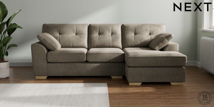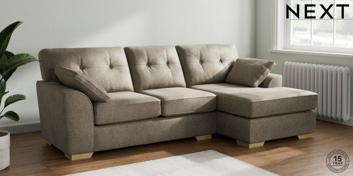 7.2.10 Stamford Buttoned Back Medium Sofa Chaise - Right Hand Cotswold Chenille Mid Mink Brown Large Square Angle - Light | Made Click here to use our website with more accessibility support, for example screen readers
