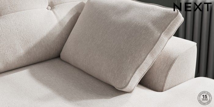 7.2.10 Stamford Buttoned Back Medium Sofa Chaise - Right Hand Cotswold Chenille Oyster Large Square Angle - Brushed Brass | Made Click here to use our website with more accessibility support, for example screen readers
