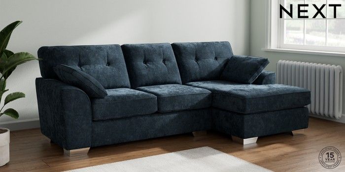 7.2.10 Stamford Buttoned Back Medium Sofa Chaise - Right Hand Distressed Velour Midnight Blue Large Square Angle - Chrome Metal | Made Click here to use our website with more accessibility support, for example screen readers