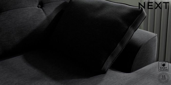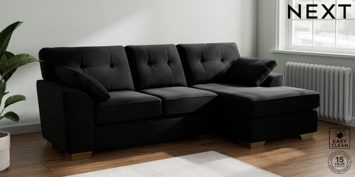 7.2.10 Stamford Buttoned Back Medium Sofa Chaise - Right Hand Fine Chenille Easy Clean Black Large Square Angle - Brushed Brass | Made Click here to use our website with more accessibility support, for example screen readers