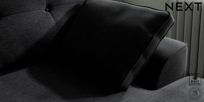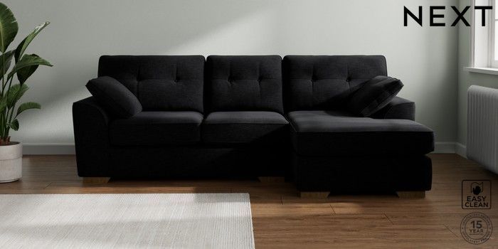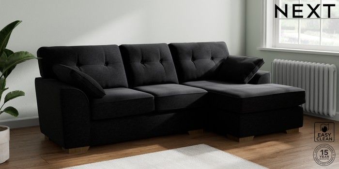 7.2.10 Stamford Buttoned Back Medium Sofa Chaise - Right Hand Fine Chenille Easy Clean Black Large Square Angle - Mid | Made Click here to use our website with more accessibility support, for example screen readers
