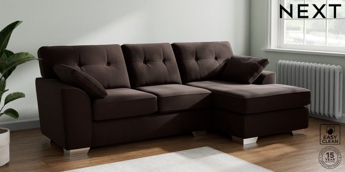 7.2.10 Stamford Buttoned Back Medium Sofa Chaise - Right Hand Fine Chenille Easy Clean Chocolate Brown Large Square Angle - Chrome Metal | Made Click here to use our website with more accessibility support, for example screen readers