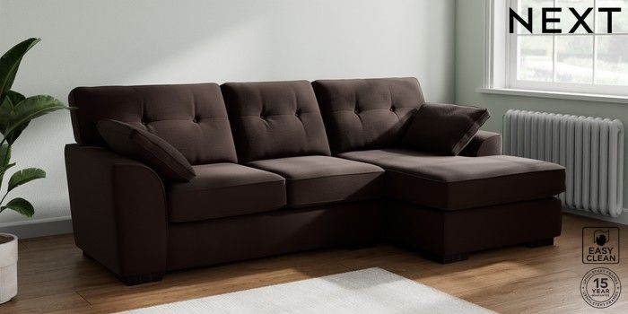 7.2.10 Stamford Buttoned Back Medium Sofa Chaise - Right Hand Fine Chenille Easy Clean Chocolate Brown Large Square Angle - Dark | Made Click here to use our website with more accessibility support, for example screen readers