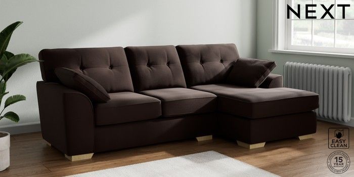 7.2.10 Stamford Buttoned Back Medium Sofa Chaise - Right Hand Fine Chenille Easy Clean Chocolate Brown Large Square Angle - Light | Made Click here to use our website with more accessibility support, for example screen readers