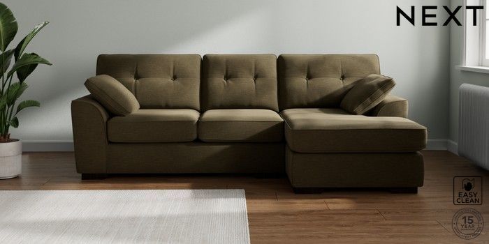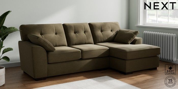 7.2.10 Stamford Buttoned Back Medium Sofa Chaise - Right Hand Fine Chenille Easy Clean Dark Moss Green Large Square Angle - Dark | Made Click here to use our website with more accessibility support, for example screen readers