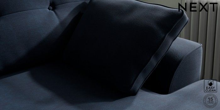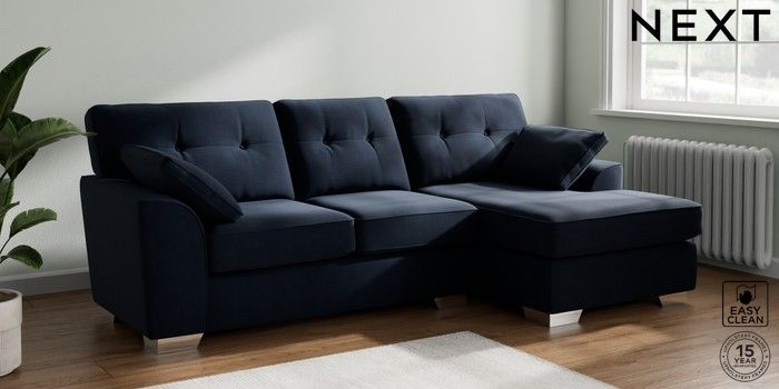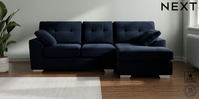 7.2.10 Stamford Buttoned Back Medium Sofa Chaise - Right Hand Fine Chenille Easy Clean Dark Navy Blue Large Square Angle - Chrome Metal | Made Click here to use our website with more accessibility support, for example screen readers