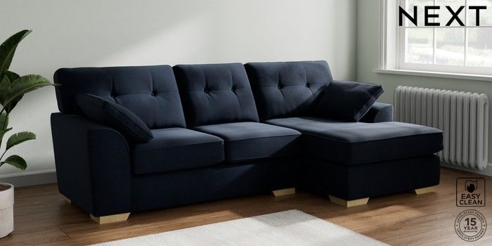 7.2.10 Stamford Buttoned Back Medium Sofa Chaise - Right Hand Fine Chenille Easy Clean Dark Navy Blue Large Square Angle - Light | Made Click here to use our website with more accessibility support, for example screen readers