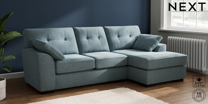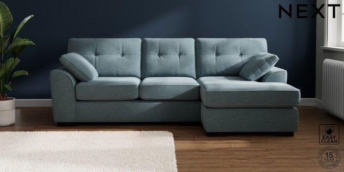 7.2.10 Stamford Buttoned Back Medium Sofa Chaise - Right Hand Fine Chenille Easy Clean Mid Blue Large Square Angle - Dark | Made Click here to use our website with more accessibility support, for example screen readers