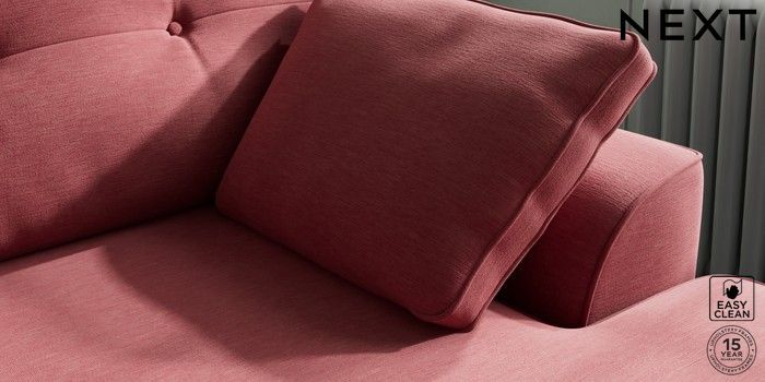 7.2.10 Stamford Buttoned Back Medium Sofa Chaise - Right Hand Fine Chenille Easy Clean Mid Pink Large Square Angle - Chrome Metal | Made Click here to use our website with more accessibility support, for example screen readers