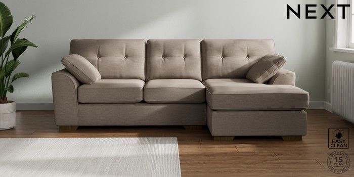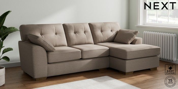 7.2.10 Stamford Buttoned Back Medium Sofa Chaise - Right Hand Fine Chenille Easy Clean Mid Taupe Brown Large Square Angle - Mid | Made Click here to use our website with more accessibility support, for example screen readers