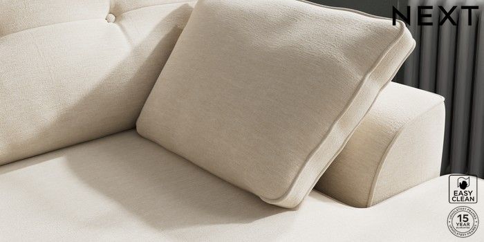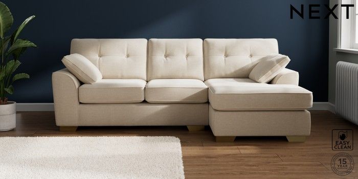 7.2.10 Stamford Buttoned Back Medium Sofa Chaise - Right Hand Fine Chenille Easy Clean Oyster Large Square Angle - Brushed Brass | Made Click here to use our website with more accessibility support, for example screen readers