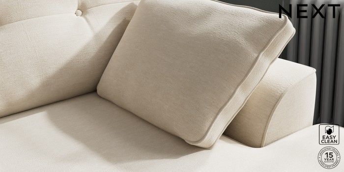7.2.10 Stamford Buttoned Back Medium Sofa Chaise - Right Hand Fine Chenille Easy Clean Oyster Large Square Angle - Chrome Metal | Made Click here to use our website with more accessibility support, for example screen readers