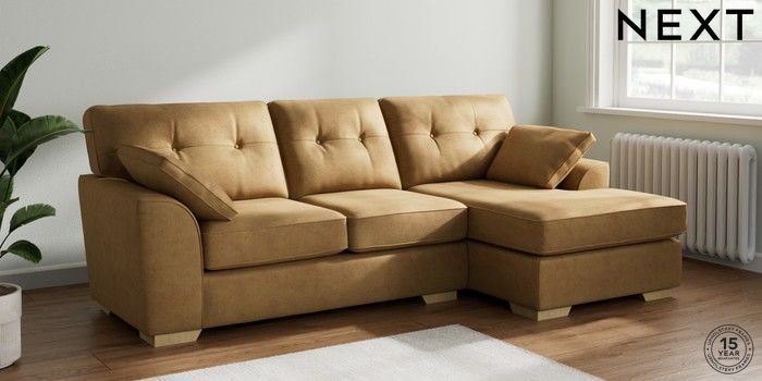 7.2.10 Stamford Buttoned Back Medium Sofa Chaise - Right Hand Luxe Chenille Honey Yellow Large Square Angle - Light | Made Click here to use our website with more accessibility support, for example screen readers