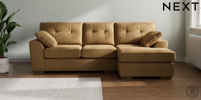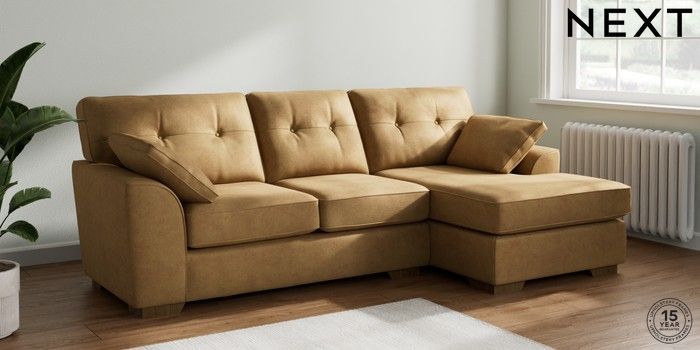 7.2.10 Stamford Buttoned Back Medium Sofa Chaise - Right Hand Luxe Chenille Honey Yellow Large Square Angle - Mid | Made Click here to use our website with more accessibility support, for example screen readers