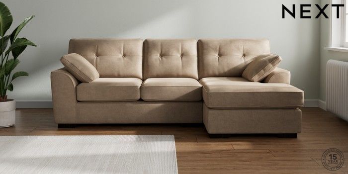 7.2.10 Stamford Buttoned Back Medium Sofa Chaise - Right Hand Luxe Chenille Mid Camel Beige Large Square Angle - Dark | Made Click here to use our website with more accessibility support, for example screen readers