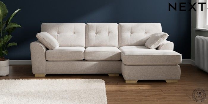 7.2.10 Stamford Buttoned Back Medium Sofa Chaise - Right Hand Multi Weave Oyster Large Square Angle - Light | Made Click here to use our website with more accessibility support, for example screen readers