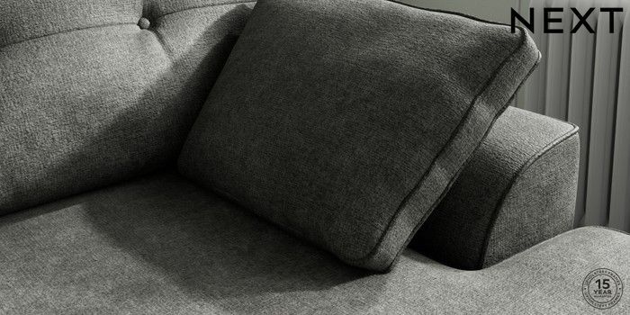 7.2.10 Stamford Buttoned Back Medium Sofa Chaise - Right Hand Plush Chenille Dark Grey Large Square Angle - Brushed Brass | Made Click here to use our website with more accessibility support, for example screen readers