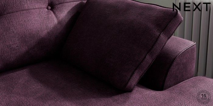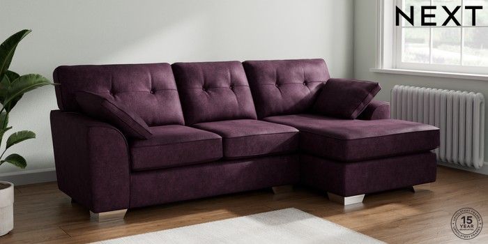 7.2.10 Stamford Buttoned Back Medium Sofa Chaise - Right Hand Plush Chenille Dark Plum Purple Large Square Angle - Chrome Metal | Made Click here to use our website with more accessibility support, for example screen readers