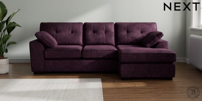 7.2.10 Stamford Buttoned Back Medium Sofa Chaise - Right Hand Plush Chenille Dark Plum Purple Large Square Angle - Dark | Made Click here to use our website with more accessibility support, for example screen readers