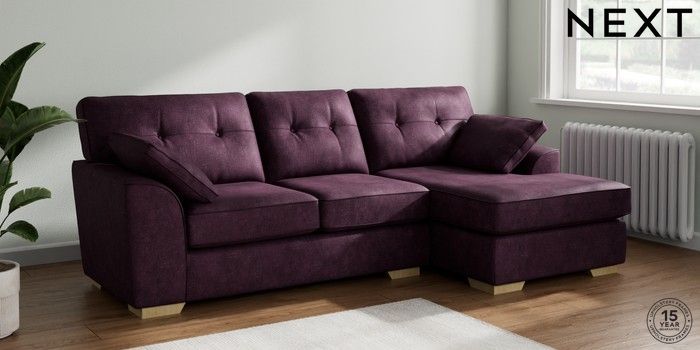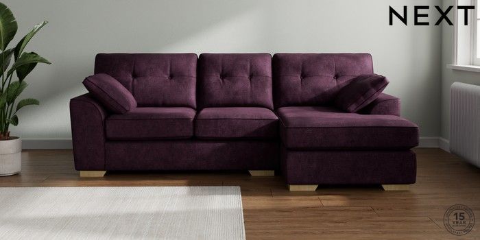 7.2.10 Stamford Buttoned Back Medium Sofa Chaise - Right Hand Plush Chenille Dark Plum Purple Large Square Angle - Light | Made Click here to use our website with more accessibility support, for example screen readers