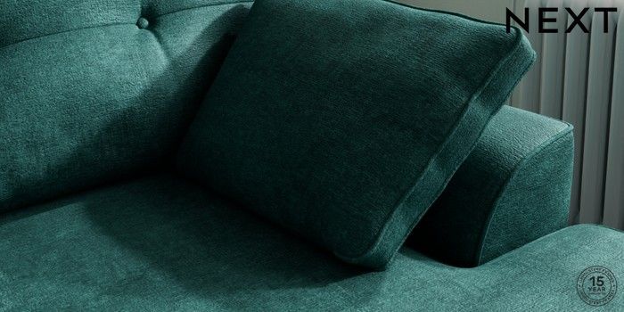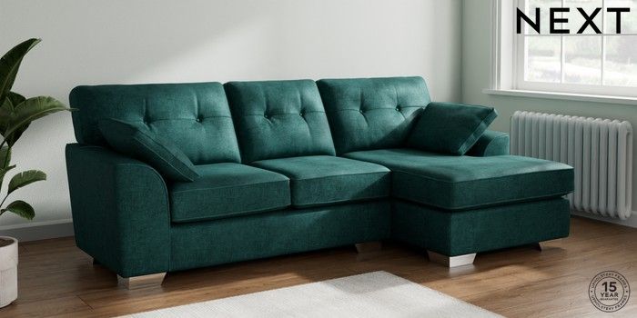 7.2.10 Stamford Buttoned Back Medium Sofa Chaise - Right Hand Plush Chenille Dark Teal Green Large Square Angle - Chrome Metal | Made Click here to use our website with more accessibility support, for example screen readers