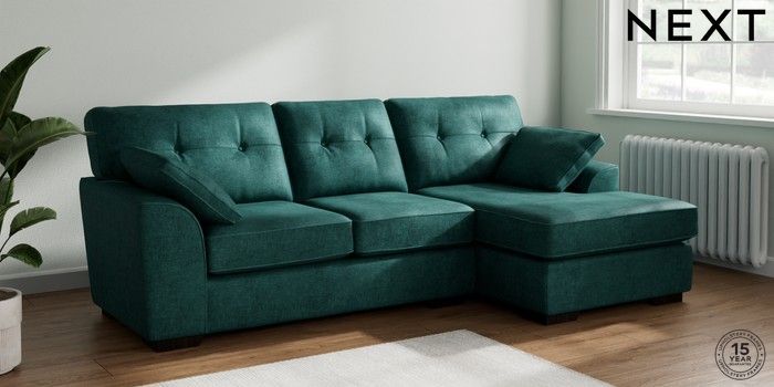 7.2.10 Stamford Buttoned Back Medium Sofa Chaise - Right Hand Plush Chenille Dark Teal Green Large Square Angle - Dark | Made Click here to use our website with more accessibility support, for example screen readers