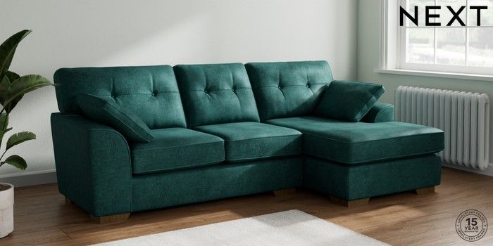 7.2.10 Stamford Buttoned Back Medium Sofa Chaise - Right Hand Plush Chenille Dark Teal Green Large Square Angle - Mid | Made Click here to use our website with more accessibility support, for example screen readers