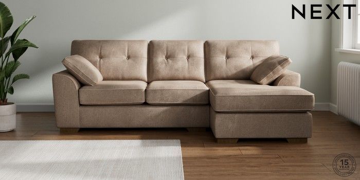 7.2.10 Stamford Buttoned Back Medium Sofa Chaise - Right Hand Plush Chenille Mid Natural Large Square Angle - Mid | Made Click here to use our website with more accessibility support, for example screen readers