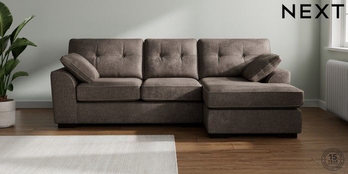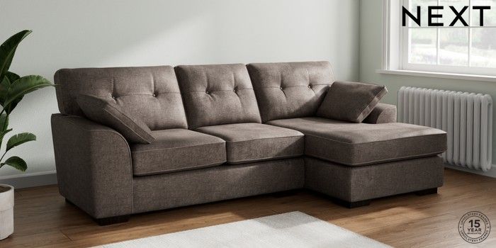 7.2.10 Stamford Buttoned Back Medium Sofa Chaise - Right Hand Plush Chenille Mink Brown Large Square Angle - Dark | Made Click here to use our website with more accessibility support, for example screen readers