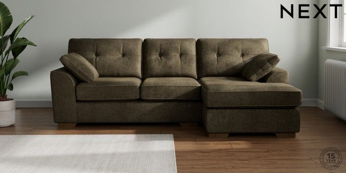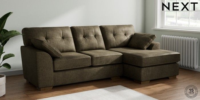 7.2.10 Stamford Buttoned Back Medium Sofa Chaise - Right Hand Plush Chenille Moss Green Large Square Angle - Mid | Made Click here to use our website with more accessibility support, for example screen readers