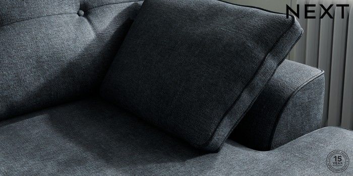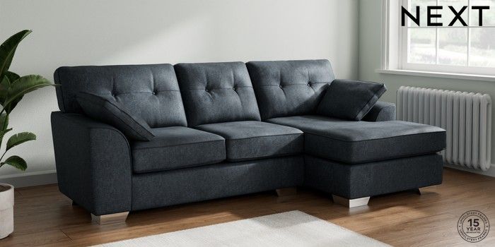 7.2.10 Stamford Buttoned Back Medium Sofa Chaise - Right Hand Plush Chenille Slate Blue Large Square Angle - Chrome Metal | Made Click here to use our website with more accessibility support, for example screen readers