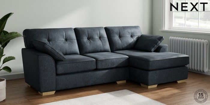 7.2.10 Stamford Buttoned Back Medium Sofa Chaise - Right Hand Plush Chenille Slate Blue Large Square Angle - Light | Made Click here to use our website with more accessibility support, for example screen readers