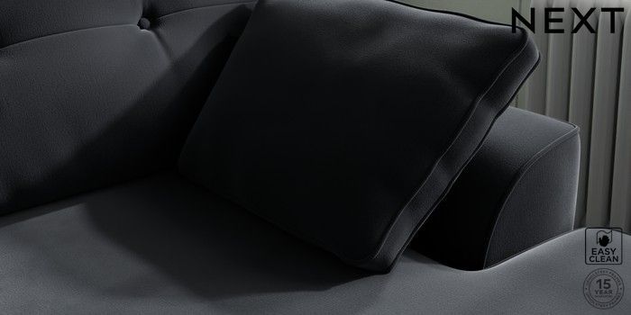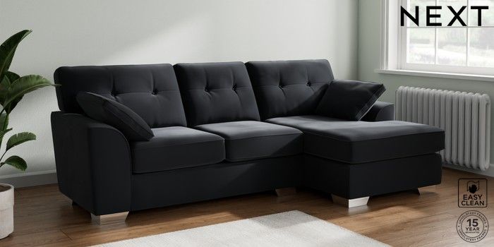 7.2.10 Stamford Buttoned Back Medium Sofa Chaise - Right Hand Plush Velvet Easy Clean Charcoal Grey Large Square Angle - Chrome Metal | Made Click here to use our website with more accessibility support, for example screen readers