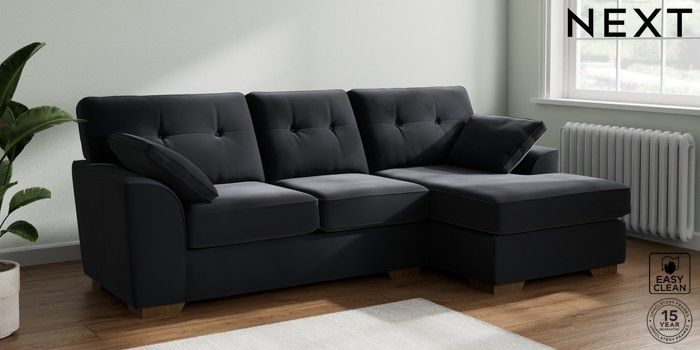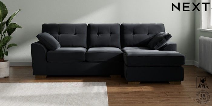 7.2.10 Stamford Buttoned Back Medium Sofa Chaise - Right Hand Plush Velvet Easy Clean Charcoal Grey Large Square Angle - Mid | Made Click here to use our website with more accessibility support, for example screen readers
